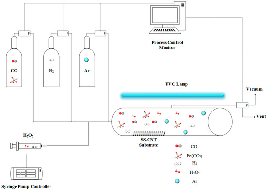 - Nasri Lari, H.; Farhanian, D.; Boffito, D.C.; Patience, G.S.; De Crescenzo, G.; Chaouki, J.; Tavares, J.R. Shedding light on iron pentacarbonyl photochemistry through a CVD case study. Catal. Commun. 2017, 100, 19–23. [Google Scholar] [CrossRef]