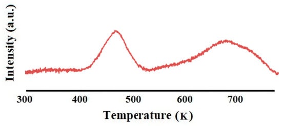 The Raman spectrum of the W2 catalyst (Pt/Re ratio 1/1) still showed the peak ascribable to the first order F2g mode; regarding the two broad peaks at 575 cm−1 and 657 cm−1, attributed in W1 to the interaction of Pt with cerium oxide surface appeared, the latter seemed to disappear. On the contrary, a further peak was observed at 982 cm−1, which is due to symmetric Re-O stretching [31]. For the W3 catalyst (Pt/Re ratio 1/2), two peaks attributed to Re-O stretching can be observed in the Raman spectrum, while the two broad peaks at 575 cm−1 and 657 cm−1, ascribed to the interaction of Pt with cerium oxide surface for the sample W1, disappeared and a new peak at 595 cm−1 was observed, linked to defect-induced (D) in ceria. These results suggested that the interaction of platinum with ceria mainly occurs at the D sites. TEM images showed the morphology of the catalysts, suggesting a single phase of spherical type (Figure 3), moreover, the particle size agreed with the crystallite size, calculated by the Scherrer equation. However, the black area may represent groups of accumulated particles. The temperature programmed reduction (TPR) profiles of the three catalysts can be divided in two main areas. The broad peak between 700 K and 750 K was attributed to ceria’s surface reduction [32] (Figure 4). The peaks between 500 K and 600 K are ascribable to an overlapping of three reduction peaks of PtOx and ReOx species and the ceria surface, as the result of the spillover effect from metal particles to the support [33].