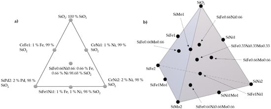 Figure 1 shows a typical scheme of the SCMD for the Si-Fe-Ni and Si-Fe-Ni-Mo systems. The Si-Ni-Mo and Si-Fe-Mo systems are in the same proportions as the presented design with two transition elements. The scheme of these designs is shown in Supplementary Figure S1.