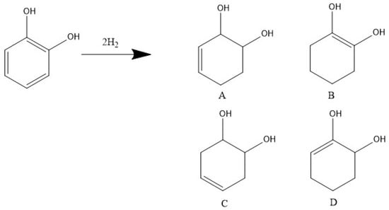 9]. The initial hydrogenation of the aromatic results in the formation of highly reactive surface intermediates, containing double bonds, which facilitate the promotion of hydrogenolysis. Examining catechol as an example and considering the intermediates that can be formed (