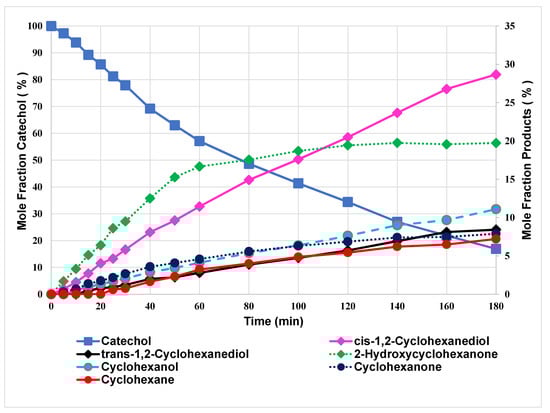 para-isomers, the major products from catechol hydrogenation were the ring hydrogenated