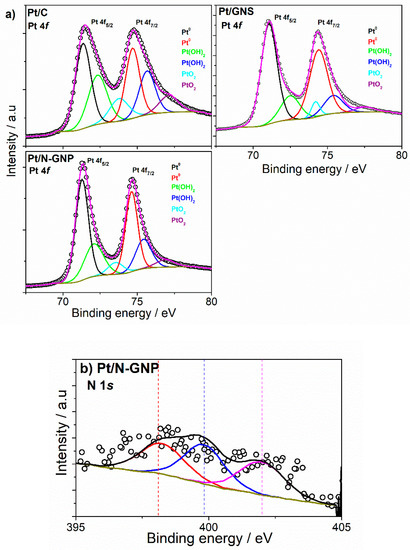 | Catalyst | Pt 4f7/2 | N 1s | ||||