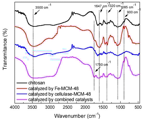 2.2.1. Degradation of Chitosan Catalyzed by MCM-48, Fe-MCM-48, and Cellulase-MCM-48