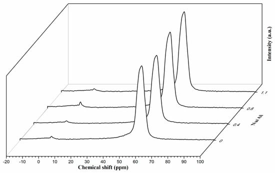 27Al MAS NMR spectra were measured on Bruker Avance III 600 MHz Wide Bore spectrometer (Bruker, Germany) operating at a magnetic field of 14.2 T. The spectra were acquired at a spinning rate of 13 kHz with a π/12 pulse width of 1.0 μs and a recycle delay of 1 s.