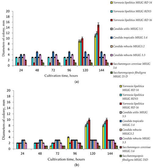 All the nine yeast strains, Candida robusta MIUG 3.2, Candida robusta MIUG 3.3, Candida tropicalis MIUG 3.4, Candida utilis MIUG 3.5, Sacharomyces cerevisae MIUG 3.6, Yarrowia lipolytica MIUG RD 14, Yarrowia lipolytica MIUG RD 15, Yarrowia lipolytica MIUG RD 16 and Saccharomycopsis fibuligera MIUG 25D, used in this study, were provided from the Microorganims Collection (acronym MIUG) of the Research and Education Platform (Bioaliment) of „Dunărea de Jos” University of Galati, Romania. The pure stock cultures were maintained by cultivation on yeast extract peptone dextrose (YPD) agar medium and preserved at 4 °C.