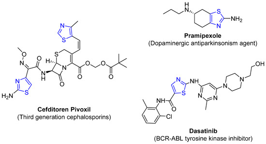 Analysis of drug structures containing a thiazole group shows a high frequency in drugs comprising the nitrogen heterocycles discussed herein and used in different pathologies (Figure 5) [2,22].
