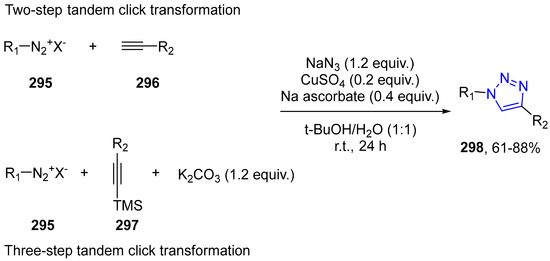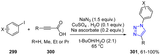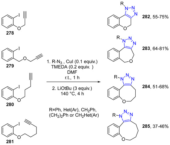 - Kolarovic, A.; Schnürch, M.; Mihovilovic, M.D. Tandem Catalysis: From Alkynoic Acids and Aryl Iodides to 1,2,3-Triazoles in One Pot. J. Org. Chem. 2011, 76, 2613–2618. [Google Scholar] [CrossRef] [PubMed]