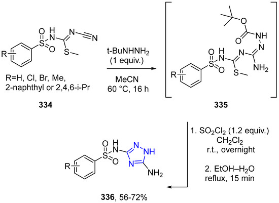 - Chibale, K.; Dauvergne, J.; Wyatt, P.G. A Novel and Efficient Regiospecific Preparation of Arenesulfonamide Derivatives of 3,5-Diamino-1,2,4-triazole. Synthesis 2002, 2, 185–190. [Google Scholar] [CrossRef]