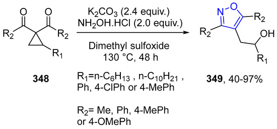 - Wang, X.; Chen, Y.; Chen, X.; Zhang, X.; Guan, W.; Li, Y. A Tandem Ring-Opening/Michael Addition/Ring-Closure Sequence for the Regiospecific Synthesis of 5-Hydroxy-4,5-dihydroisoxazoles. Asian J. Org. Chem. 2019, 8, 1479–1483. [Google Scholar] [CrossRef]