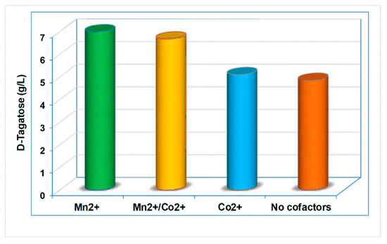 As shown, CoCl2 had a negligible effect on the yield of D-tagatose under these conditions. However, the production of D-tagatose in the presence of 0.5 mM MnSO4 was approximately 40% higher compared with the control.
