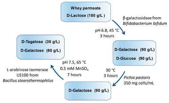 - Zheng, Z.; Xie, J.; Liu, P.; Li, X.; Ouyang, J. Elegant and efficient biotransformation for dual production of D-tagatose and bioethanol from cheese whey powder. J. Agric. Food Chem. 2019, 67, 829–835. [Google Scholar] [CrossRef] [PubMed]