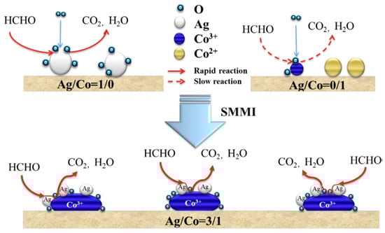 - Qu, Z.; Chen, D.; Sun, Y.; Wang, Y. High catalytic activity for formaldehyde oxidation of AgCo/APTES@MCM-41 prepared by two steps method. Appl. Catal. A Gen. 2014, 487, 100–109. [Google Scholar] [CrossRef]