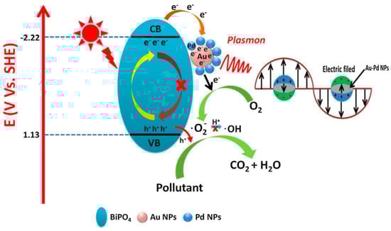 - Zhang, Y.; Park, S.J. Au–pd bimetallic alloy nanoparticle-decorated BiPO4 nanorods for enhanced photocatalytic oxidation of trichloroethylene. J. Catal. 2017, 355, 1–10. [Google Scholar] [CrossRef]