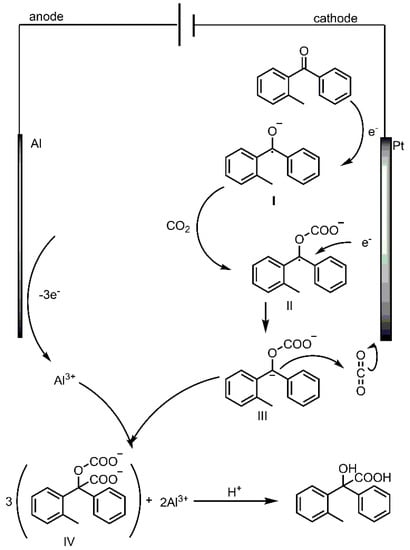 - Doherty, A.P.; Marley, E.; Barhdadi, R.; Puchelle, V.; Wagner, K.; Wallace, G.G. Mechanism and kinetics of electrocarboxylation of aromatic ketones in ionic liquid. J. Electroanal. Chem. 2018, 819, 469–473. [Google Scholar] [CrossRef]