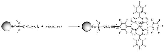 The functionalization with Ru-TF5-tetraphenylporphyrin, has been obtained using the well-known nucleophilic aromatic substitution of the activated fluorine atom of the phenyl rings, by the amine group of the silane, as reported in Scheme 2 [31].