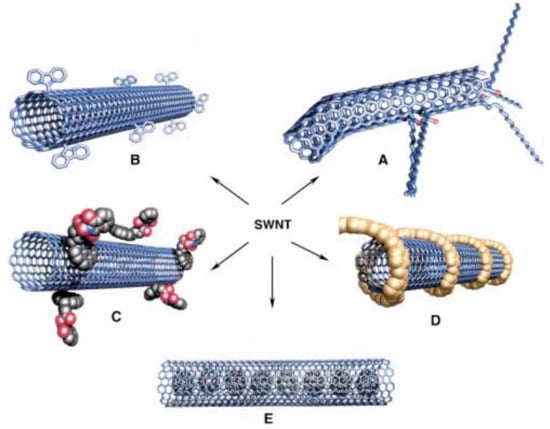 - Mahajan, S.; Patharkar, A.; Kuche, K.; Maheshwari‡, R.; Deb, P.K.; Kalia, K.; Tekade, R.K. Functionalized carbon nanotubes as emerging delivery system for the treatment of cancer. Int. J. Pharm. 2018, 548, 540–558. [Google Scholar] [CrossRef] [PubMed]