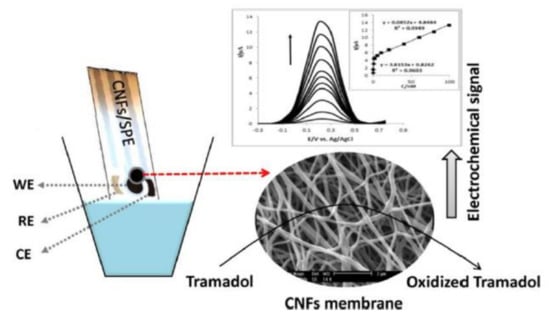 Some of the advantages of modifying electrodes with nanomaterials are mentioned in this section. Since nanomaterials have a large superficial area, they facilitate electrochemical processes occurring on the surface of the working electrodes. The use of nanomaterials results in improved electron transfer from the electroactive molecule in the electrode. Nanomaterials may act as catalysts of the electrochemical reactions, which allows the reduction of energy necessary for the reaction to occur and favours process reversibility. Using nanomaterials allows direct contact of the analyte with the electrode surface, thus improving sensitivity [52].