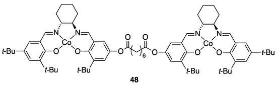 - Breinbauer, R.; Jacobsen, E.N. Cooperative Asymmetric Catalysis with Dendrimeric [Co(salen)] Complexes. Angew. Chem. Int. Ed. 2000, 39, 3604–3607. [Google Scholar] [CrossRef]