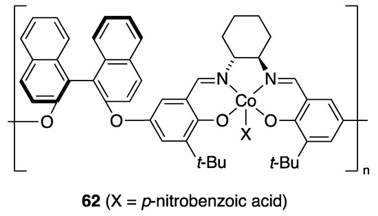 - Ready, J.M.; Jacobsen, E.N. A practical oligomeric (salen)Co catalyst for asymmetric epoxide ring-opening reactions. Angew. Chem. Int. Ed. 2002, 41, 1374–1377. [Google Scholar] [CrossRef]