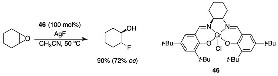 - Haufe, G.; Bruns, S. (Salen)chromium Complex Mediated Asymmetric Ring Opening of meso- and Racemic Epoxides with Different Fluoride Sources. Adv. Synth. Catal. 2002, 344, 165–171. [Google Scholar] [CrossRef]