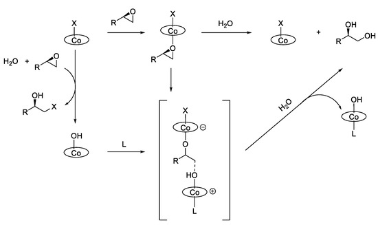 - Ford, D.D.; Nielsen, L.P.C.; Zuend, S.J.; Musgrave, C.B.; Jacobsen, E.N. Mechanistic Basis for High Stereoselectivity and Broad Substrate Scope in the (salen)Co(III)-Catalyzed Hydrolytic Kinetic Resolution. J. Am. Chem. Soc. 2013, 135, 15595–15608. [Google Scholar] [CrossRef] [PubMed]
