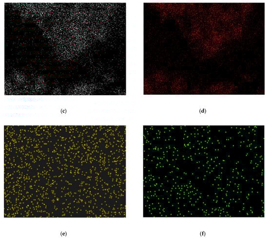 SEM mapping image of (a) 20%Pt-Ba0.5AlOx/C catalyst, (b) Ba, (c) Al, (d) O, (e) C, and (f) Pt element.