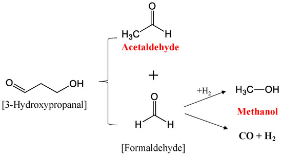 3-Hydroxypropanal transformation to acetaldehyde and formaldehyde.