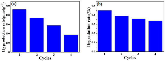 With the increasing depletion of fossil fuels, such as coal, oil, and natural gas, the search for alternative and renewable energy sources has become a top priority. The use of solar energy, a clean primary energy source with high efficiency and low energy exhaust, is crucially important [1]. Hydrogen is a colorless, odorless, and non-toxic flammable gas energy source, and is also the most abundant element in nature. Hydrogen forms various chemical components with other elements. As the final product of the compounds formed by hydrogen and oxygen is water, using hydrogen as a clean energy source does not pollute the environment. To date, hydrogen production technologies include thermochemical, water electrolysis, biological and photocatalytic processes, etc. [2]. Among them, the photocatalytic method possesses the advantages of low cost, no pollution, high cycle stability, and when used in conjunction with solar energy, has attracted particular attention and become one of the popular promising energy-related research topics [3,4].