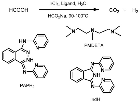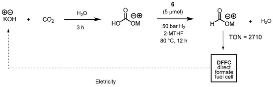 The use of formic acid as hydrogen carrier and storage system has been widely investigated and reviewed in various works [299,300,350,351,352,353,354,355,356,357,358,359]. A variety of both heterogeneous and homogeneous catalytic systems have been applied for its decomposition, including the use of light irradiation [360,361,362,363,364,365,366,367,368,369,370,371,372,373,374,375,376,377,378,379,380,381].