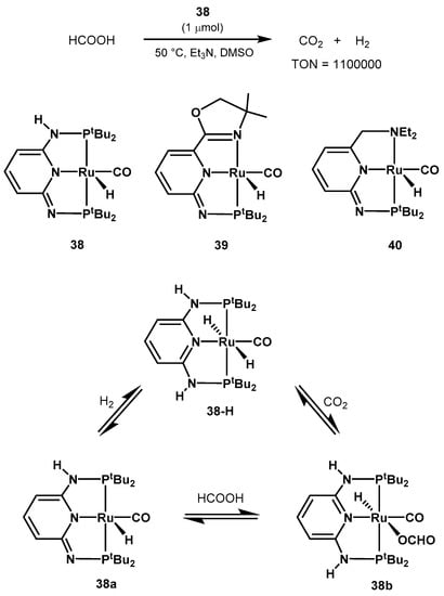 PNP pincer catalysts screened by Milstein for low-temperature formic acid dehydrogenation [388].