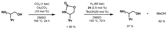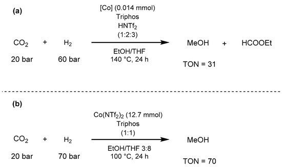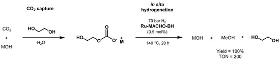- vom Stein, T.; Meuresch, M.; Limper, D.; Schmitz, M.; Hölscher, M.; Coetzee, J.; Cole-Hamilton, D.J.; Klankermayer, J.; Leitner, W. Highly Versatile Catalytic Hydrogenation of Carboxylic and Carbonic Acid Derivatives using a Ru-Triphos Complex: Molecular Control over Selectivity and Substrate Scope. J. Am. Chem. Soc. 2014, 136, 13217–13225. [Google Scholar] [CrossRef]