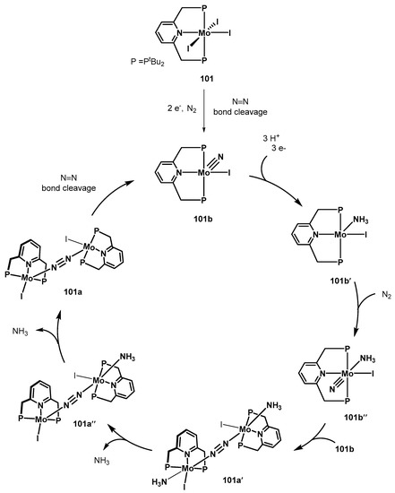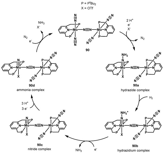 Pincer-type complexes have been extensively applied for AAD reactions with a plethora of bio-substrates, ranging from ethanol [178,179,180,181] to lignocellulose [182], as described in Section 2.1. The applied transition metal complexes generally show good performance in terms of stability and activity, with the advantage of carrying out selective reactions at mild conditions and low catalyst loading. Often, the pincer ligand plays an active part of the catalytic cycle (metal–ligand cooperativity), which seemingly is determinant for the catalyst’s stability as well as reactivity. The mechanistic details of AAD are beyond the scope of this review and can be found elsewhere [183,184,185,186,187,188,189,190,191,192,193,194,195]. The topic is of great importance and a deeper understanding of the reaction mechanisms is still necessary [196,197]. Nevertheless, some representative examples of catalytic cycles involving pincer ligand participation are provided throughout the review.