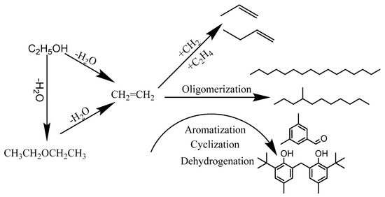 Process of hydrocarbons formation from ethanol. Adapted from: Reference [33].