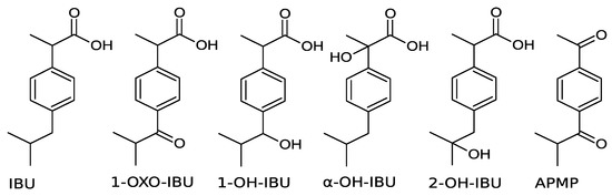 Structural formulas of IBU and the by-products detected.