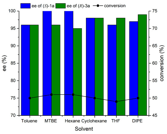 - Ghanem, A.; Schurig, V. Lipase-catalyzed irreversible transesterification of secondary alcohols using isopropenyl acetate. Monatshefte für Chemie 2003, 134, 1151–1157. [Google Scholar] [CrossRef][Green Version]