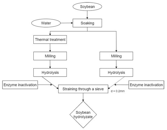 The hydrolysis of soybeans for each commercial food grade proteinase was carried out at the suggested conditions by their manufacturer. The ratio between soybean and water ranged from 1:3 to 1:7. In our research, soybean hydrolysis using enzyme Flavourzyme R was carried out at the varying conditions including temperature 40–60 °C, d = 5 °C; duration 60–180 min, d = 30 min; pH 5–7, d = 0.5 and concentration of the enzyme–substrate complex (E/S) 2.5 mL·100 g−1–17.5 mL·100 g−1, d = 2.5 mL·100 g−1.