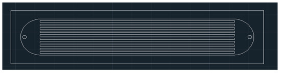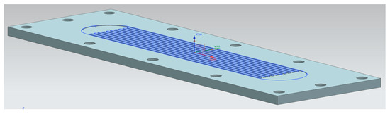 The designed microreactor (Type A2) was fabricated in stainless steel (type 316 L) plate of 8 mm thickness, by using a CNC (Computer Numerical Control) micro-milling machine. Two microchannel plates were fabricated by micro-milling 11 rectangular slots of 1 mm × 1 mm × 100 mm with a semi-circular inlet and outlet manifolds in SS 316L plates. This dimension will be reduced to 0.5 mm × 0.5 mm × 100 mm due to the catalyst coating on the microchannel wall. The CAD drawing of the microreactor (see Figure 9) was used to generate the NX-10 software code (see Figure 10). The generated code is shown having 12 drills, 11 slots/channels and 2 cavity/manifolds. The resulting microreactor produced from the generated code by the Bridgeport Interact 412X CNC milling machine (Bridgeport, UK) is shown in Figure 11. Three G-code were generated, one for the slots/channels, one for the cavity/manifold and the other was for the 12 drill.