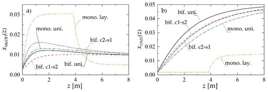 - A layered distribution of monofunctional pellets with the MeOH catalyst pellets located in the first section of the reactor (Figure 1b);