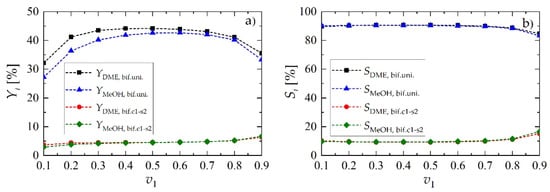 - Yield of DME or MeOH: