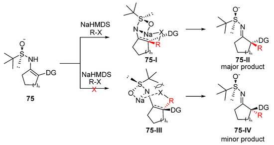 - Qin, S.; Liu, S.; Cao, Y.; Li, J.; Chong, C.; Liu, T.; Luo, Y.; Hu, J.; Jiang, S.; Zhou, H.; et al. α-Alkylation of Chiral Sulfinimines for Constructing Quaternary Chiral Carbons by Introducing Removable Directing Groups. Org. Lett. 2018, 20, 1350–1354. [Google Scholar] [CrossRef]