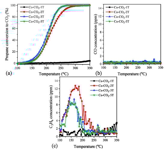 - Zhang, W.; Díez-Ramírez, J.; Anguita, P.; Descorme, C.; Valverde, J.L.; Giroir-Fendler, A. Nanocrystalline Co3O4 catalysts for toluene and propane oxidation: Effect of the precipitation agent. Appl. Catal. B Environ. 2020, 273, 118894. [Google Scholar] [CrossRef]