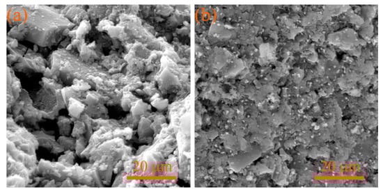 To verify the conclusion of BET, the SEM characterization was performed and the surface morphology of the two catalysts is shown in Figure 3. Figure 3a is the scanning electron microscope morphology of the Mn-Ce/AC catalyst. Mn-Ce/AC catalyst had developed pores, large pore size and fine particles on the AC surface, which was consistent with the BET experimental results (Table 1). The surface of the catalyst became compacted and the total pore diameter and the number of microspores became smaller after loading CaO, Because the loaded CaO entered into the pores of the catalyst, which led to the blockage of the pores and further lead to the destruction of carbon pore morphology of AC, and the surface of the catalyst became rough. Poor surface morphology would hinder the adsorption behavior of reacted gas.