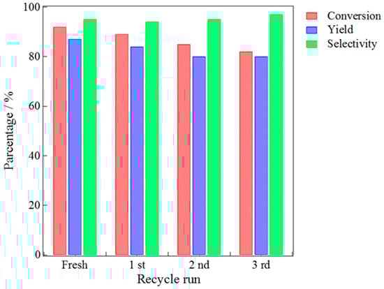 For the determination of the FA amount after the reaction (50 mg Pd/Al2O3, 1 mmol benzonitrile, 3 mmol FA, 3 mL 2-PrOH, 3 h, room temperature), the catalyst was filtered and the filtrate was diluted with 47 mL of pure water, and then analyzed with HPLC (WATERS 600) using an Aminex HPX-87H column (Bio-Rad Lab. Inc., Hercules, CA, USA) attached to a refractive index detector. Aq H2SO4 (10 mM) at a flow rate of 0.5 mL min−1 was run through the column, which was maintained at 50 °C [24].