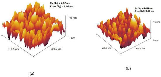 AFM and NP-10 probes tips (Bruker, www.brukerafmprobes.com) with V-shaped cantilever and 20 nm radius pyramidal-geometry were used. The measurements were done in Tapping mode. The software NanoScope Analysis v1.4 (Bruker, Billerica, Massachusetts, USA, 2018) was used to calculate the average roughness which determines the deviation in height. Root mean square roughness represents the standard deviation of surface heights from AFM images. The thickness of was obtained by spectroscopic ellipsometry.