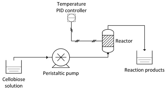 For both the continuous and batch reactor, several withdrawals were analyzed with a glucose (GO) assay kit. The amount of glucose was determined by incubating the reaction mixture (1 mL), previously diluted, with 2 mL of glucose-measuring reagent at 37 °C for 30 min, based on the D-glucose oxidase–peroxidase method [37]. Absorbance was measured at 540 nm by a spectrometer instrument (Perkin Elmer Instruments, Lambda 25 UV/Vis).