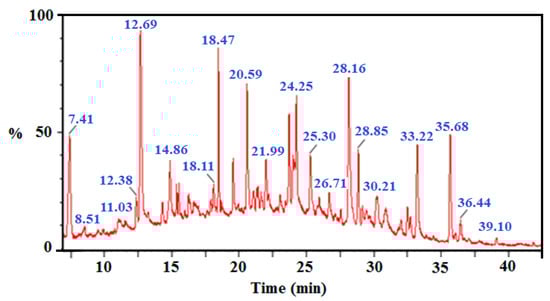 Following photocatalytic treatment of chlorophenols’ mixture (2-CP, 2,4-DCP, 2,4,6-TCP and 2,3,4,5-TeCP) at equal initial concentration [CP]0 = 5 mg/L, an increased overlap of chromatographic peaks was observed. Therefore, many difficulties to follow the degradation of the chlorophenols’ mixture from a chromatographic analysis have arisen (Figure 9).