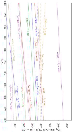 - Schmalzried, H.; Laqua, W. Multicomponent oxides in oxygen potential gradients. Oxid. Met. 1981, 15, 339–353. [Google Scholar] [CrossRef]