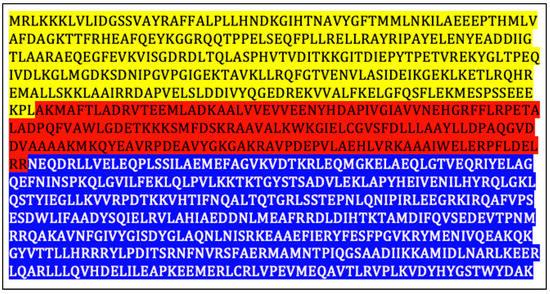 Amino acid sequence of the SK72 DNA polymerase I. Note: 5′-3′ exonuclease domain (blue region), 3′-5′ exonuclease domain (red region), and 5′-3′ polymerase domain (yellow region).