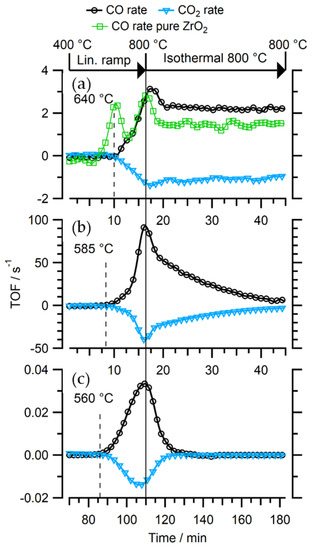 - Makri, M.; Vasiliades, M.A.; Petallidou, K.; Efstathiou, A.M. Effect of support composition on the origin and reactivity of carbon formed during dry reforming of methane over 5wt% Ni/Ce1−xMxO2−δ (M=Zr4+, Pr3+) catalysts. Catal. Today 2016, 259, 150–164. [Google Scholar] [CrossRef]