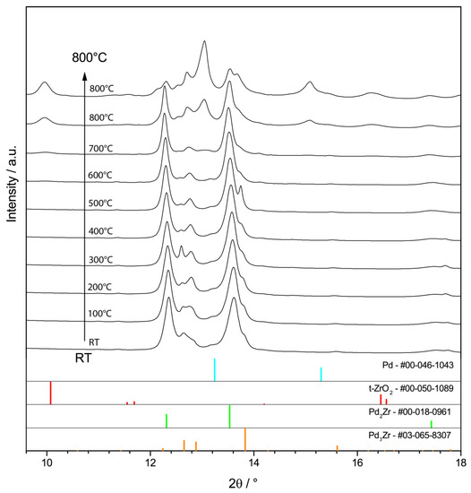 - Schlicker, L.; Doran, A.; Schneppmüller, P.; Gili, A.; Czasny, M.; Penner, S.; Gurlo, A. Transmission in situ and operando high temperature X-ray powder diffraction in variable gaseous environments. Rev. Sci. Instrum. 2018, 89, 033904. [Google Scholar] [CrossRef]